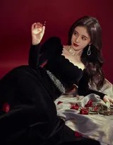 鞠婧祎身着墨绿丝绒长裙侧身回眸,暖黄灯光在她精致的侧脸镀上一层柔光,仿佛从旧时光走来的画中人暖调光影中鞠婧祎轻倚桌边,眼眸低垂似在沉思,珍珠耳饰与卷曲发丝勾勒出温柔静谧的轮廓橘色光影笼罩下她手持复古电话,朱唇微启眼神迷离,仿佛正进行一场跨越时空的秘密对话鞠婧祎一袭红裙置身于暗调背景,锁骨线条精致如蝶,指尖轻抚下颌展现极具张力的静态之美她慵懒靠在复古沙发上,光线穿过发丝形成光晕,嘴角一抹浅笑温柔了周遭的空气与时光特写镜头捕捉她卷翘睫毛下的澄澈眼眸,光影在瞳孔中跳跃,诉说着无声却万千的心事鞠婧祎身着缎面吊带裙背对镜头轻回首,香肩微露颈线优美,氛围暧昧而高级充满故事张力